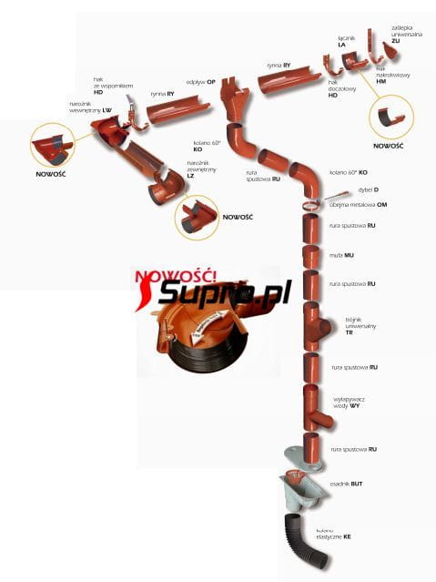 Jest to jedyny na rynku KOMPLETNY SYSTEM OCHRONY RYNIEN I RUR SPUSTOWYCH: foliowanie i wewnętrzny szew rury, gwarantuje wysoką estetykę i brak zarysowań.