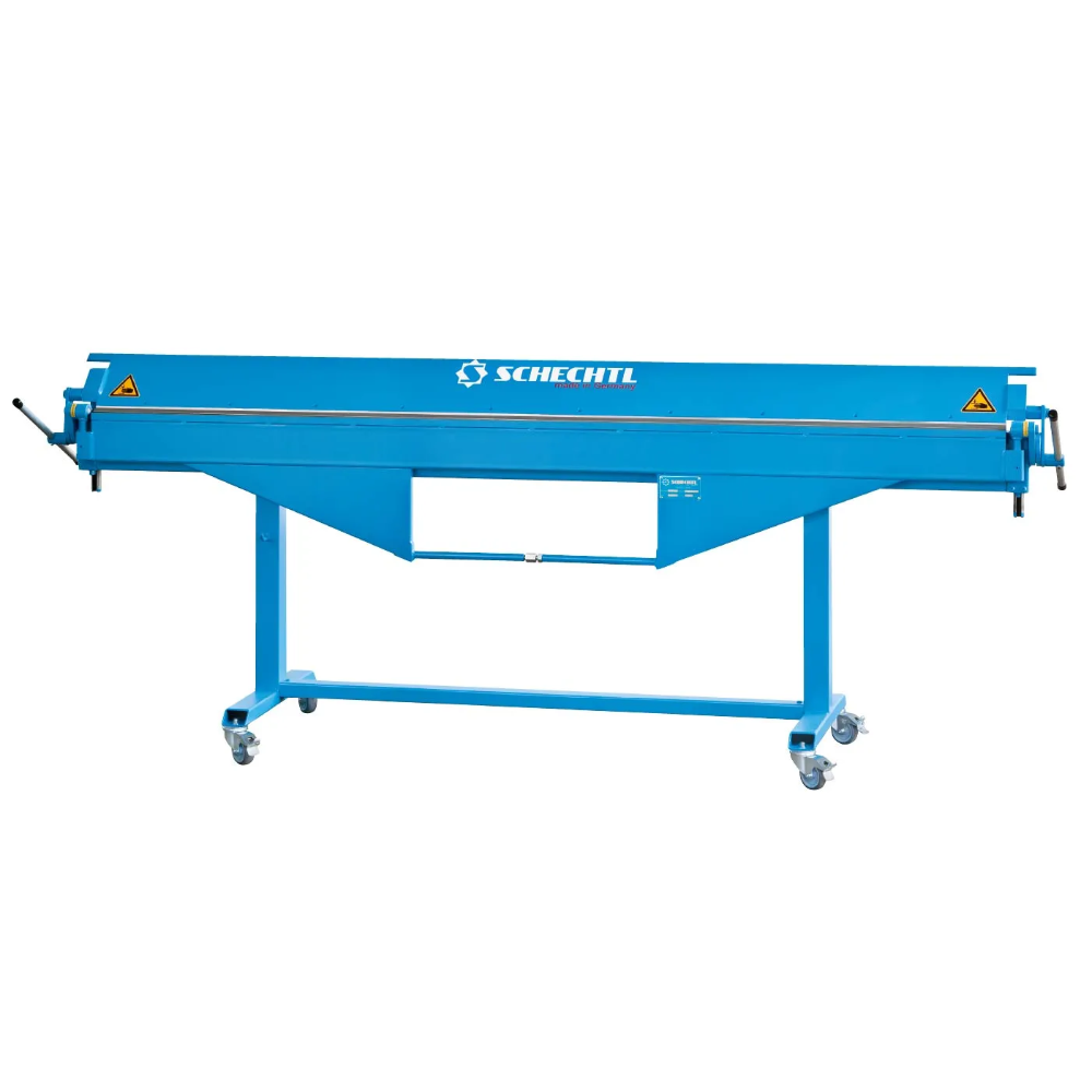 Giętarka Schechtl LBX 200 może być dodatkowo wyposażona w stół tylny z obustronną precyzyjną regulacją odległości BG 500mm lub BG 750mm oraz nożyce krążkowe.